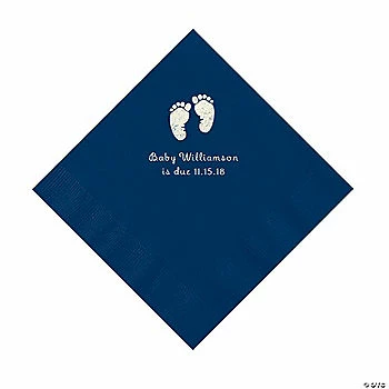 Best Pirce 🎉 Navy Baby Feet Personalized Napkins with Silver Foil – 50 Pc. Luncheon 🎁