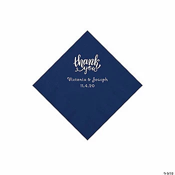 Buy ❤️ Navy Thank You Personalized Napkins with Silver Foil – Beverage 🛒