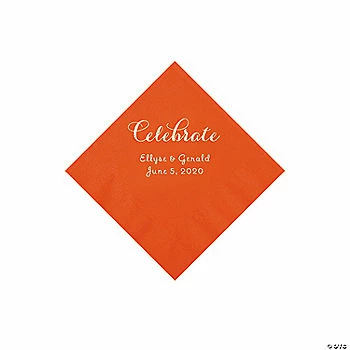 Cheapest ✔️ Orange Celebrate Personalized Napkins with Silver Foil – Beverage 👏