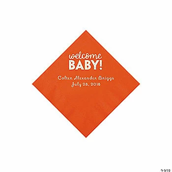 Discount 🛒 Orange Welcome Baby Personalized Napkins with Silver Foil – 50 Pc. Beverage 🥰