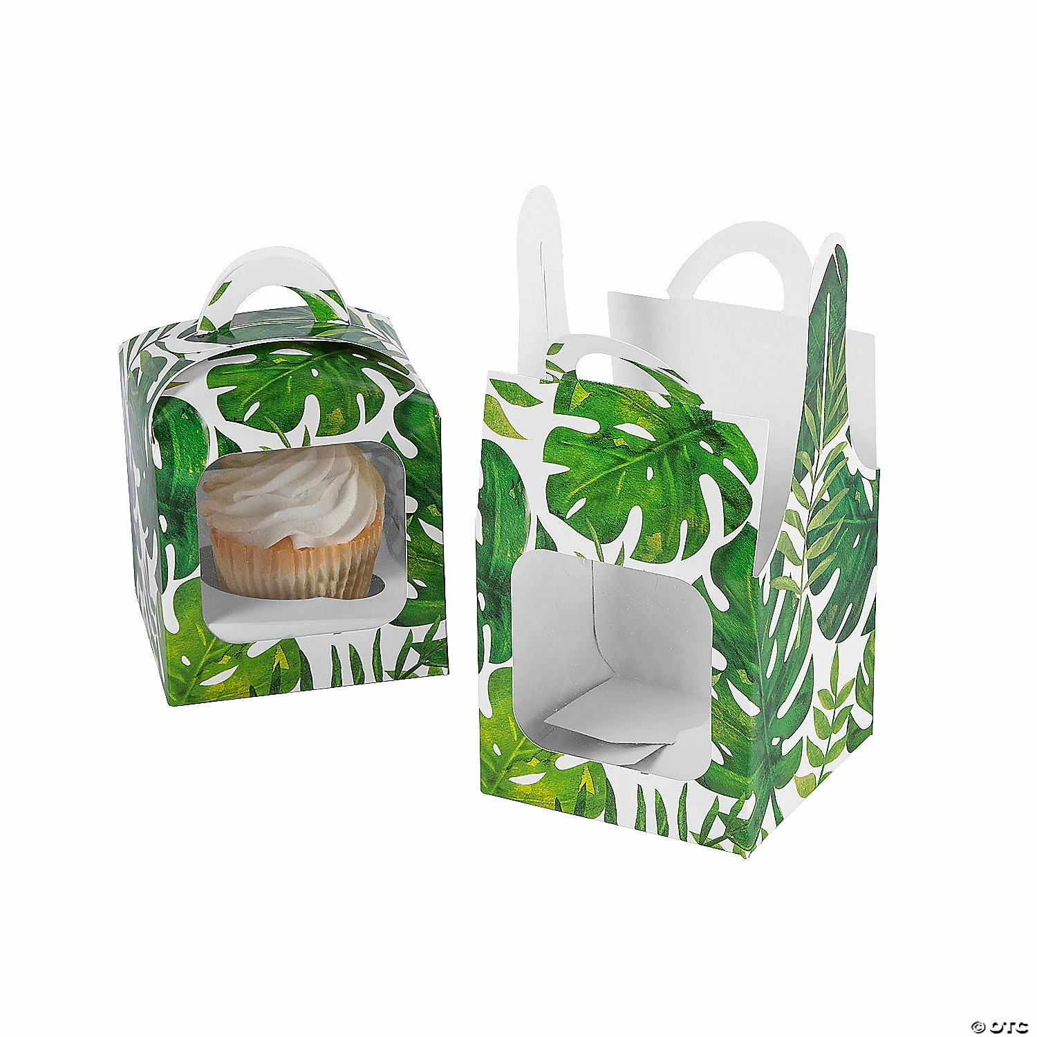 Perfect for any luau party, these handy cupcake boxes feature a palm leaf design and a window to view the cupcake. The perfect way to send party guests home with a treat, just pre-package your cupcakes and set them out on your sweets table for guests to grab. Need more luau or tropical party supplies? We have you covered! Find tons of low-priced supplies throughout this site for a complete party look. Cardstock. 4″ x 4″ x 4″ Simple assembly required.