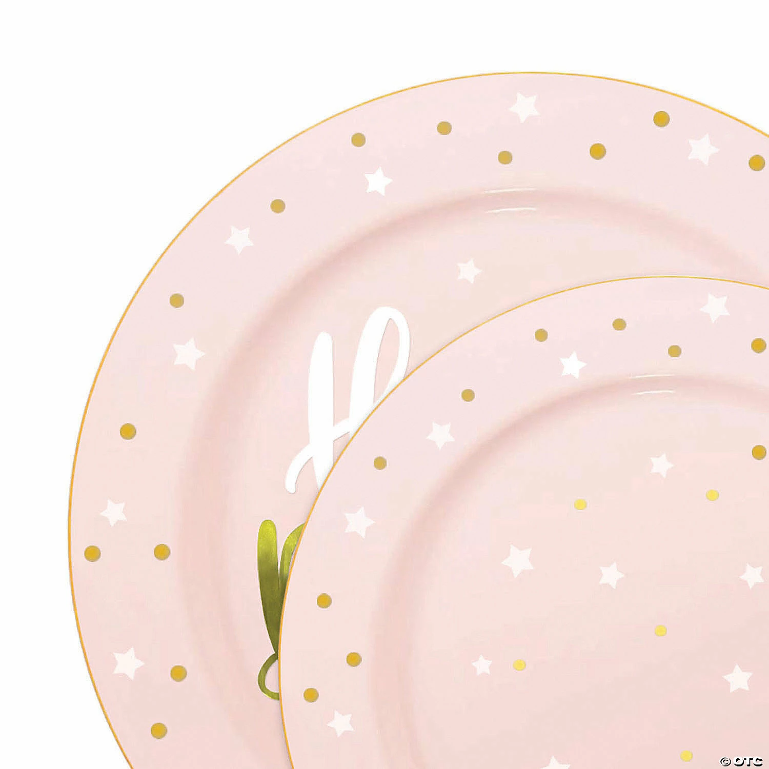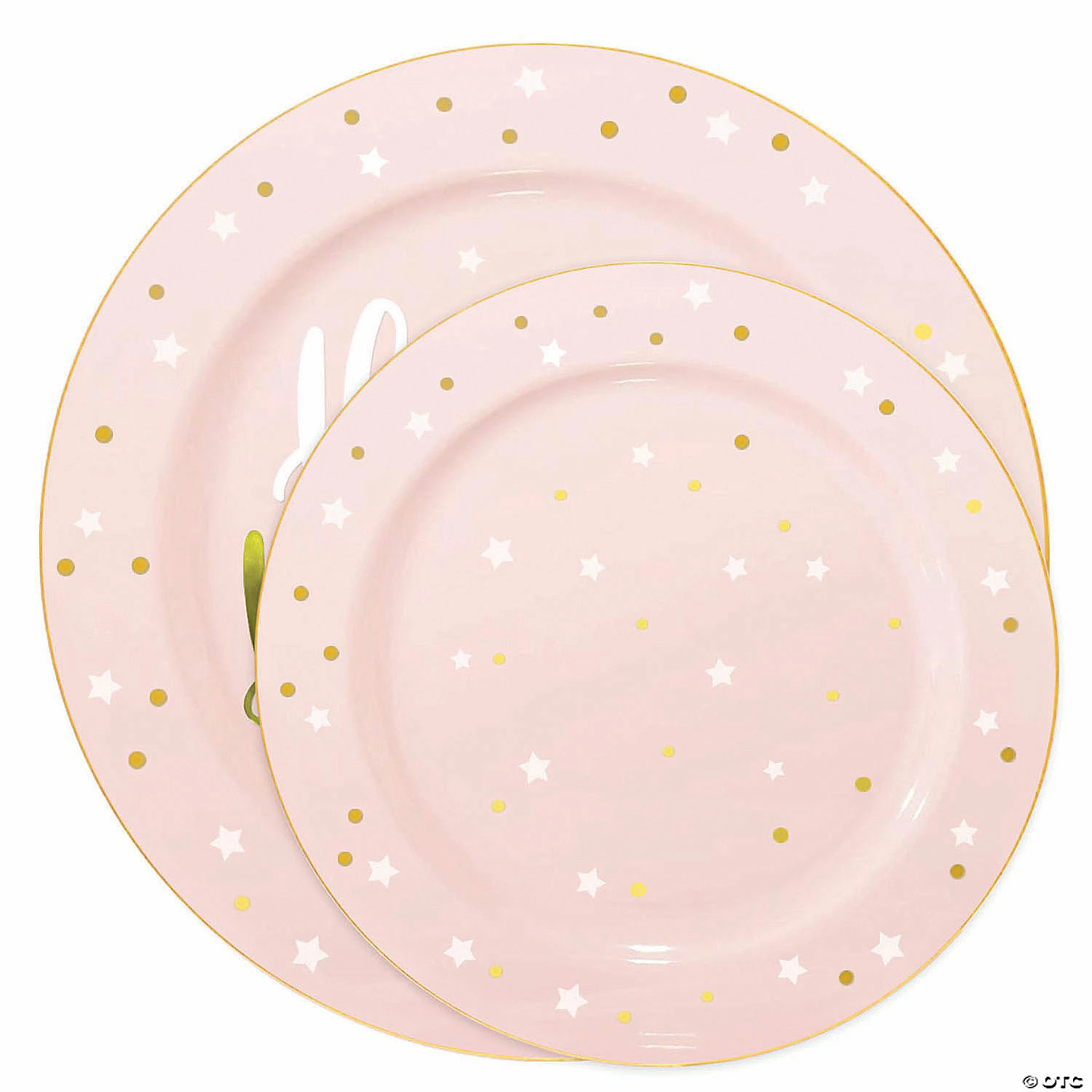 Cheapest π Pink and Gold π₯³ Birthday Round Disposable Plastic Dinnerware Value Set (40 Dinner Plates + 40 Salad Plates) π§¨