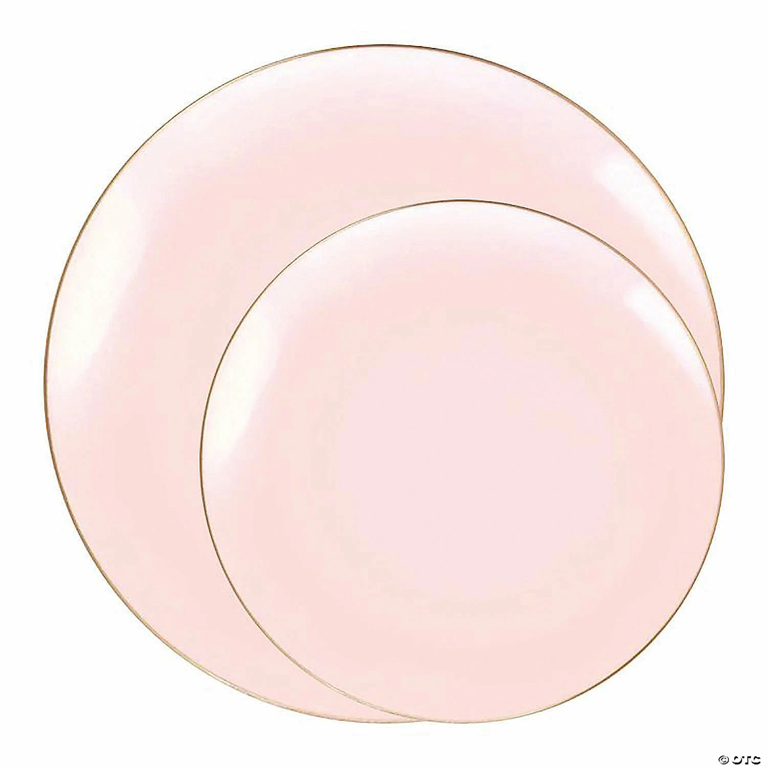 Brand new π Pink with Gold Organic Round Disposable Plastic Dinnerware Value Set (40 Dinner Plates + 40 Salad Plates) π€©