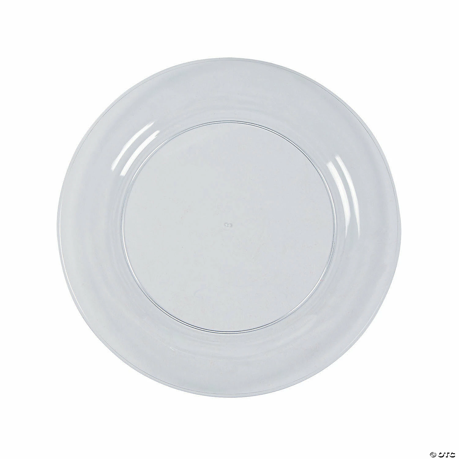 Stylish yet strong enough to handle all of your eats, sweets and treats! Ideal for wedding reception supplies, anniversary dinners and corporate events, these clear plastic plates complement any celebration dΓ©cor. No matter your color scheme or theme, these plates will help you bring your big event to life! (25 pcs. per unit) 10 1/4″