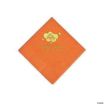 New ๐ Pumpkin Orange Oh Baby Personalized Napkins with Gold Foil – 50 Pc. Beverage โจ