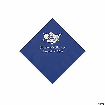 An adorable addition to party supplies, these fun napkins feature an unique “Oh Baby” design perfect for a baby shower or gender reveal party. Sure to make your tableware sparkle and shine, customizable napkins add a special touch to any celebration. Pair these stylish napkins with some of our perfectly priced party supplies and you’re all set! Personalize with 2 lines of text. Printed with gold or silver foil. Paper. (50 pcs. per unit) Beverage, 5″; luncheon, 6 1/2”. Not microwave safe. © OTC