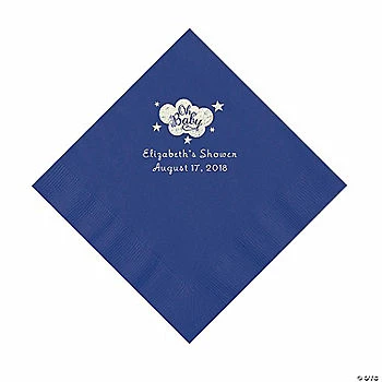 An adorable addition to party supplies, these fun napkins feature an unique “Oh Baby” design perfect for a baby shower or gender reveal party. Sure to make your tableware sparkle and shine, customizable napkins add a special touch to any celebration. Pair these stylish napkins with some of our perfectly priced party supplies and you’re all set! Personalize with 2 lines of text. Printed with gold or silver foil. Paper. (50 pcs. per unit) Beverage, 5″; luncheon, 6 1/2”. Not microwave safe. © OTC