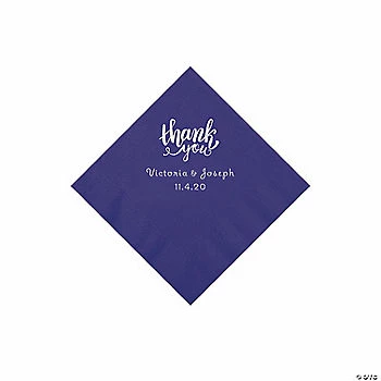 Budget ✔️ Purple Thank You Personalized Napkins with Silver Foil – Beverage 💯