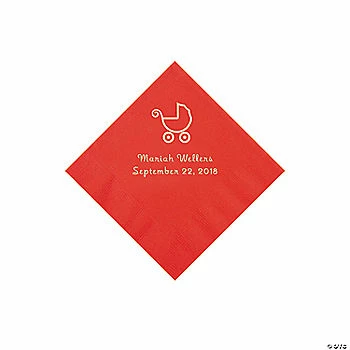 Promo ✔️ Red Baby Carriage Personalized Napkins with Silver Foil – Beverage ⭐