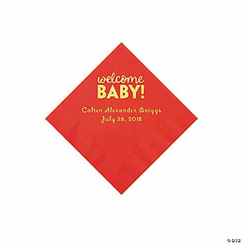 Cheapest ❤️ Red Welcome Baby Personalized Napkins with Gold Foil – 50 Pc. Beverage ⭐