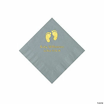 Buy 🔔 Silver Baby Feet Personalized Napkins with Gold Foil – 50 Pc. Beverage 🔔