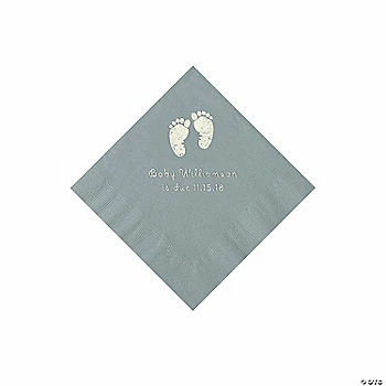 Cheapest ⭐ Silver Baby Feet Personalized Napkins with Silver Foil – 50 Pc. Beverage ✨