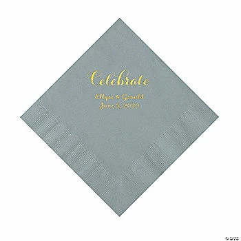 Deals 🤩 Silver Celebrate Personalized Napkins with Gold Foil – Luncheon 🎉
