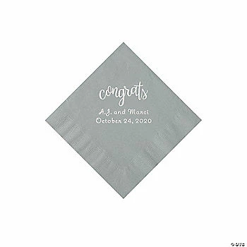 Best deal ๐งจ Silver Congrats Personalized Napkins with Silver Foil – Beverage ๐