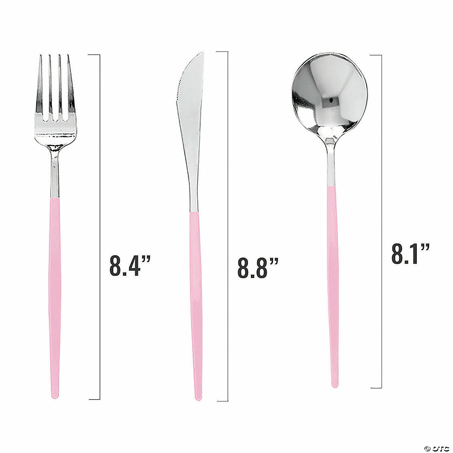 Best Pirce π€© Silver with Pink Handle Moderno Disposable Plastic Dinner Forks (140 Forks) π