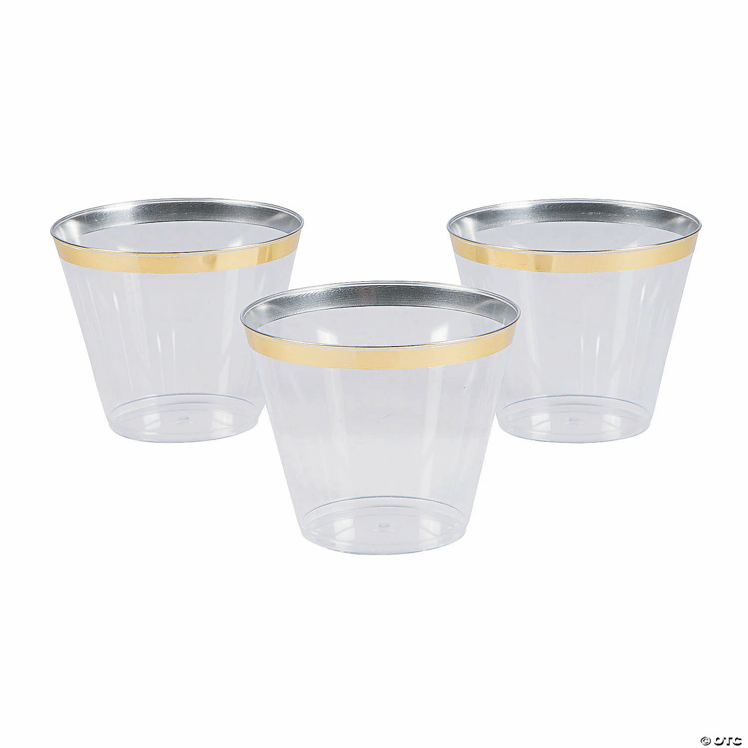 Promo ๐ Small Plastic Cups with Gold Trim – 24 Pc. ๐งจ