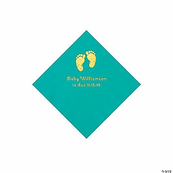 Coupon 🔥 Teal Baby Feet Personalized Napkins wit Gold Foil – 50 Pc. Beverage 👍
