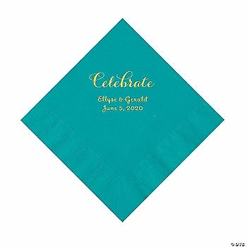 Promo βοΈ Teal Lagoon Celebrate Personalized Napkins with Gold Foil – Luncheon π