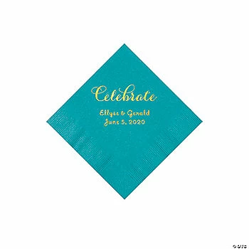 Outlet ✔️ Turquoise Celebrate Personalized Napkins with Gold Foil – Beverage 🛒