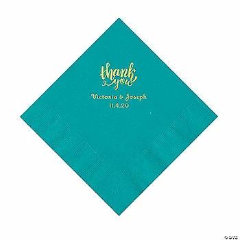 New ⭐ Turquoise Thank You Personalized Napkins with Gold Foil – Luncheon 🔥
