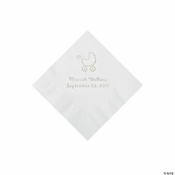 Best Pirce 🎉 White Baby Carriage Personalized Napkins with Silver Foil – Beverage 😍