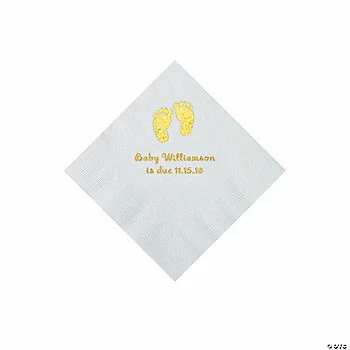 New 💯 White Baby Feet Personalized Napkins with Gold Foil – 50 Pc. Luncheon 🥰