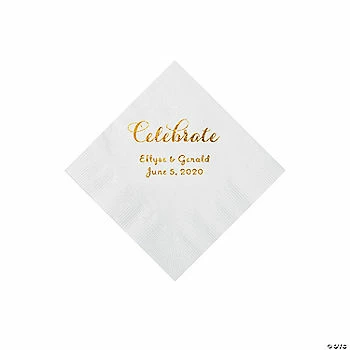 Wholesale 🔔 White Celebrate Personalized Napkins with Gold Foil – Beverage ✔️