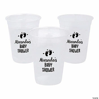 Celebrate the Momma-to-Be with these personalized plastic cups. Featuring a cute baby feet and hearts image along with personalized text, these disposable plastic cups are the perfect addition to baby shower supplies. Have these cups available at the baby showerβs beverage station for a presentation that will impress guests β and the Mom-to-Be! Plastic. (40 pcs. per unit) 5 1/2″ 16 oz. Personalize with 3 lines of text. © OTC