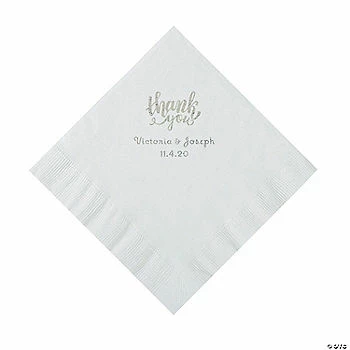 Best Sale 🛒 White Thank You Personalized Napkins with Silver Foil – Luncheon 👍