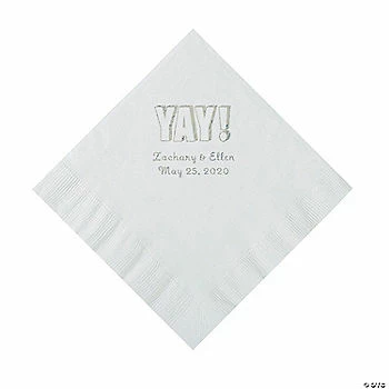 Best Sale ⭐ White Yay Personalized Napkins with Silver Foil – Luncheon 🤩