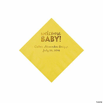 Best deal 👍 Yellow Welcome Baby Personalized Napkins with Gold Foil – 50 Pc. Beverage 🛒