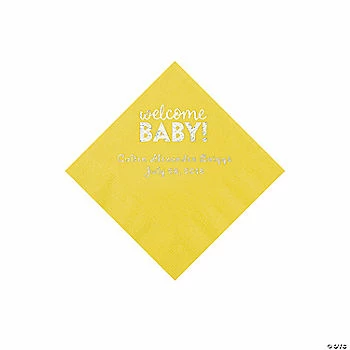 Discount โค๏ธ Yellow Welcome Baby Personalized Napkins with Silver Foil – 50 Pc. Beverage ๐ฅฐ